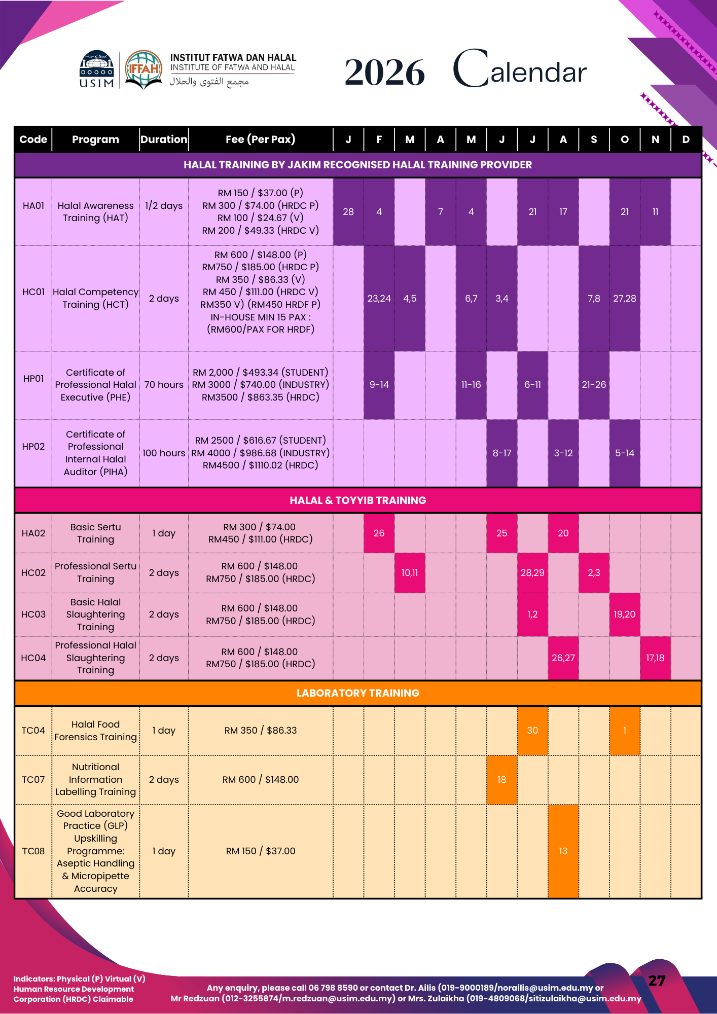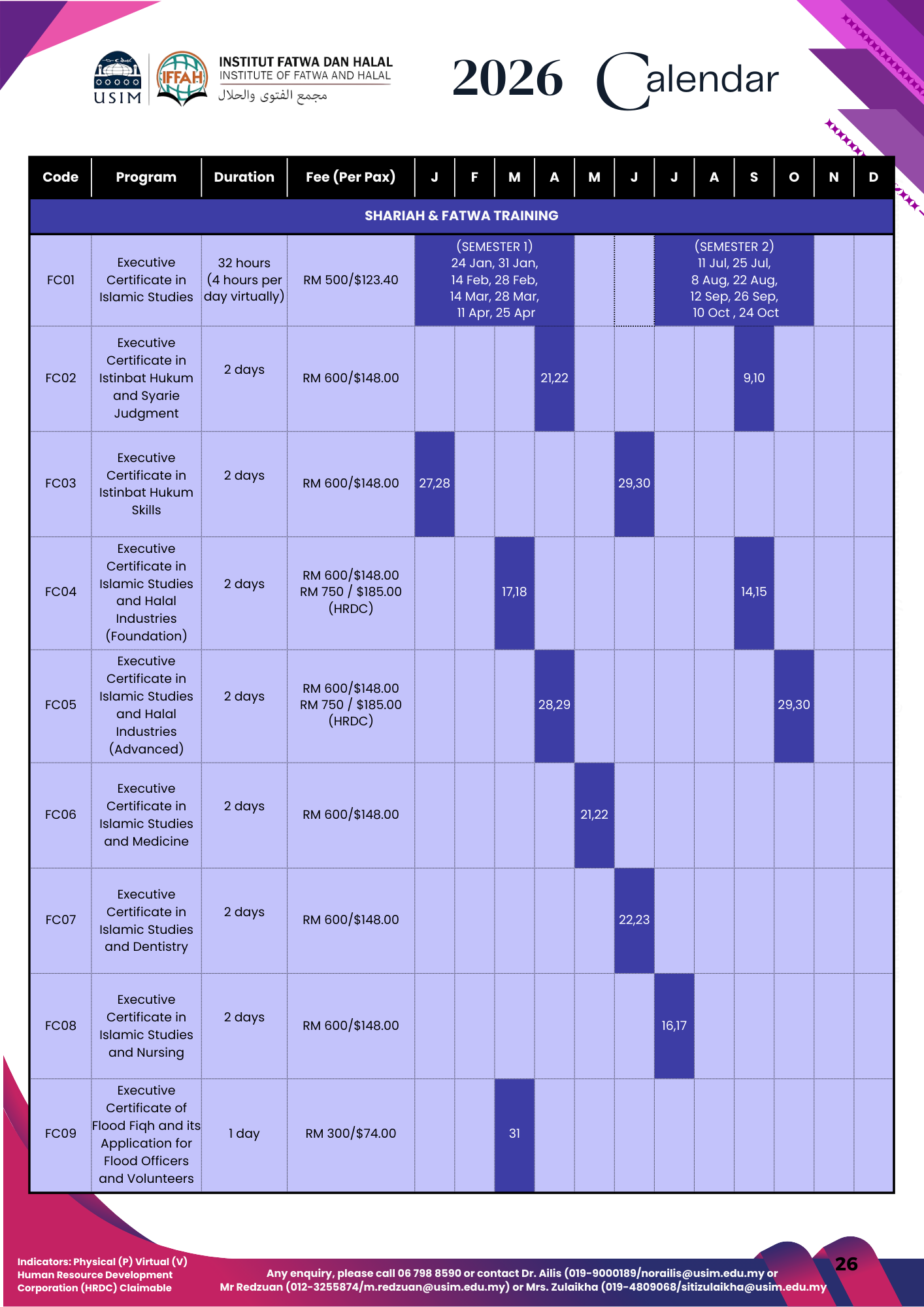 IFFAH TRAINING TAKWIM CALENDAR 2026